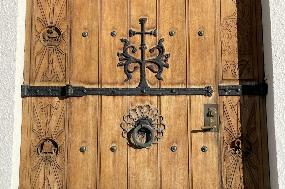 Nye benker og bord utenfor kirken til bruk for pilegrimer og andre besøkende