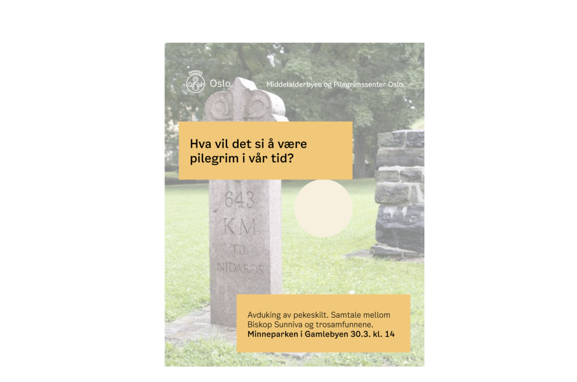 Mandag den 30 mars kl.14.00-16.00 har vi avduking av et pekeskilt ved Milesteinen ved Hallvardskatedralen i Oslo. Skiltet er flerreligiøst og viser til både tradisjonelle kristne pilegrimsmål og til mål som er viktige for jøder og muslimer.