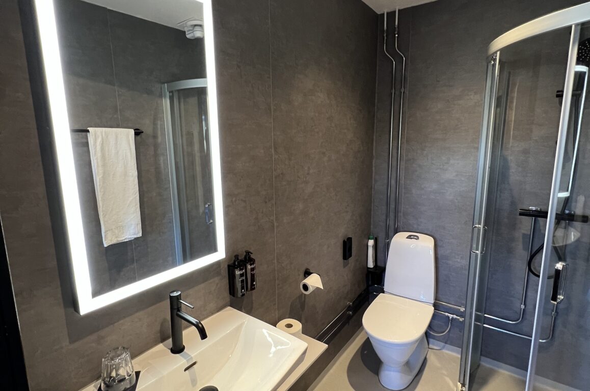 At the motel there are 24 well equipped rooms with shower, toilet, telephone, TV and free wifi access. You can exchange currencies for free, and pay in euros or Norwegian kroner.