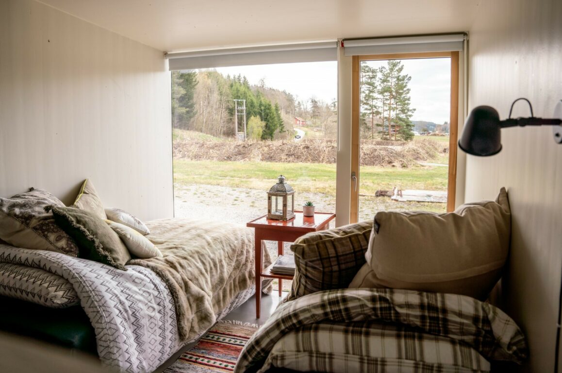 I en av de gamle låvene - er det nå bygget 5 unike compact-living hytter som alle har eget bad og sommerkjøkken ute, samt hybelkjøkken inne. Alle hytter rommer inntil 5 sjester (2enkeltsenger + familiekøyeseng), og hver enhet har en egen skjermet "uteplass - inne".