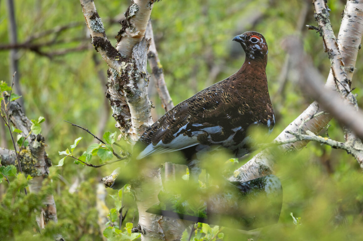 The ptarmigan, Lagopus lagopus, is a characteristic gallinaceous bird in the Norwegian mountain regions, including Drivdalen. It is well adapted to the high mountain landscape and is an important part of the mountain ecosystem. In summer, the ptarmigan is brown and white patterned, which provides good camouflage against heather and scrub, while in winter it changes to a completely white plumage that provides excellent concealment against snow.