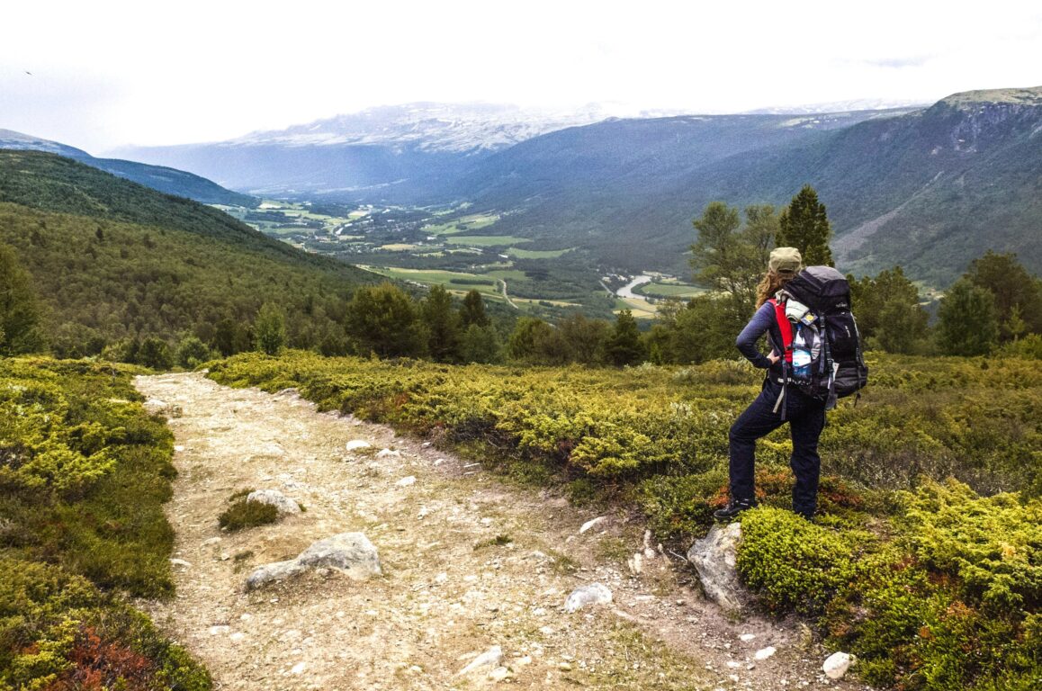 On the third day of the journey, you pass through lush forest on the hillside by Veslfjellet, before emerging onto Solsidevegen with a lovely view over the valley and the mountains on the opposite side. Solsidevegen takes you all the way down to Dovre village, where you will find the last shop before Dovrefjell. The next supermarket is in Oppdal, about five days’ walk from here.