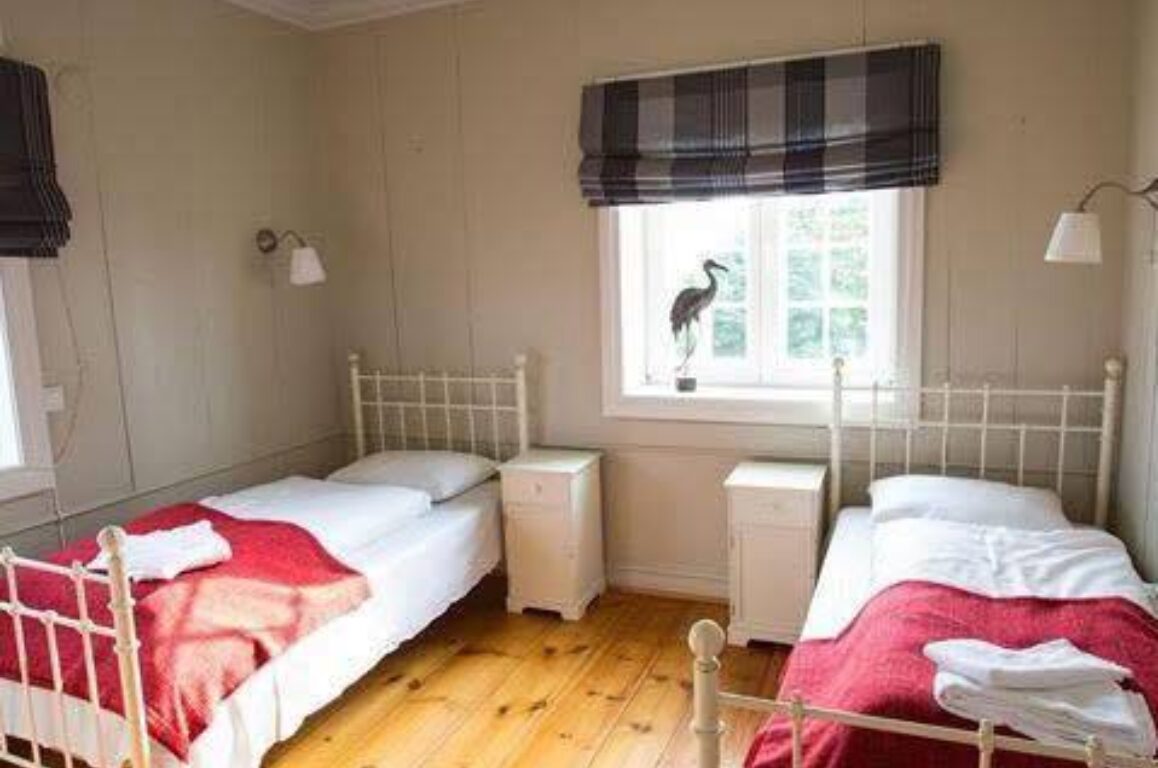 I det restaurerte kårhuset på gården fra 1700-tallet, tilbys overnatting for små grupper. Her er 12 sengeplasser fordelt på seks soverom, med to enkle senger på rommet og håndvask på hvert rom. Bad på gangen, i 1. og 2. etasje, stue med salonger, 30" TV med parabol i egen stue og trådløst internett på alle rom. Huset har også et fullt utstyrt kjøkken, og passer godt for selvhushold. Det er også mulig å forhåndsbestille frokost og middag. Sengetøy og håndklær er inkludert i prisen.