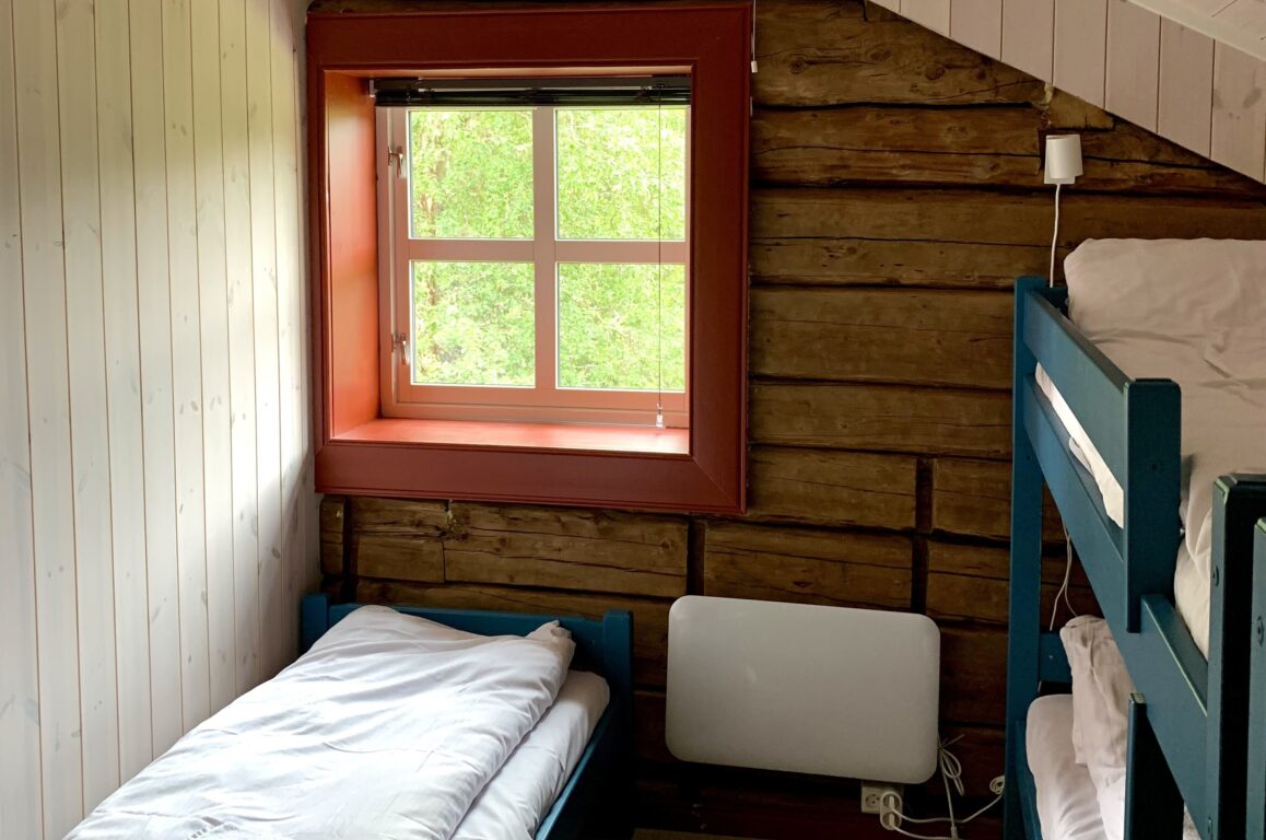 Kom og bo i vårt restaurerte gamle stabbur, opprinnelig fra tidlig på 1800-tallet. Her har vi to private soverom med dobbeltsenger, og et soverom med to køyesenger og en enkeltseng.