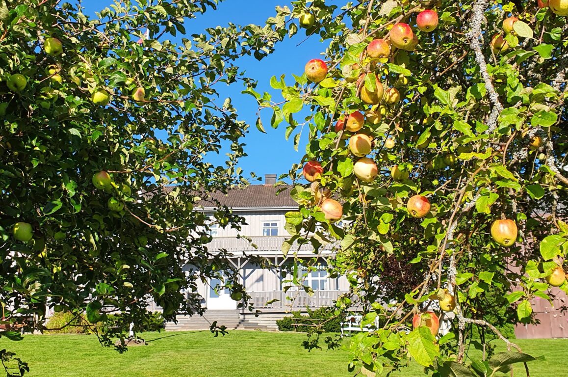 Gjestehuset og hovedhuset har flotte fellesarealer og et herskapelig uteområde med egen eplehage og en idyllisk bekk som renner ut i Vestvannet. Stedet har historiske aner tilbake til norrøn tid.