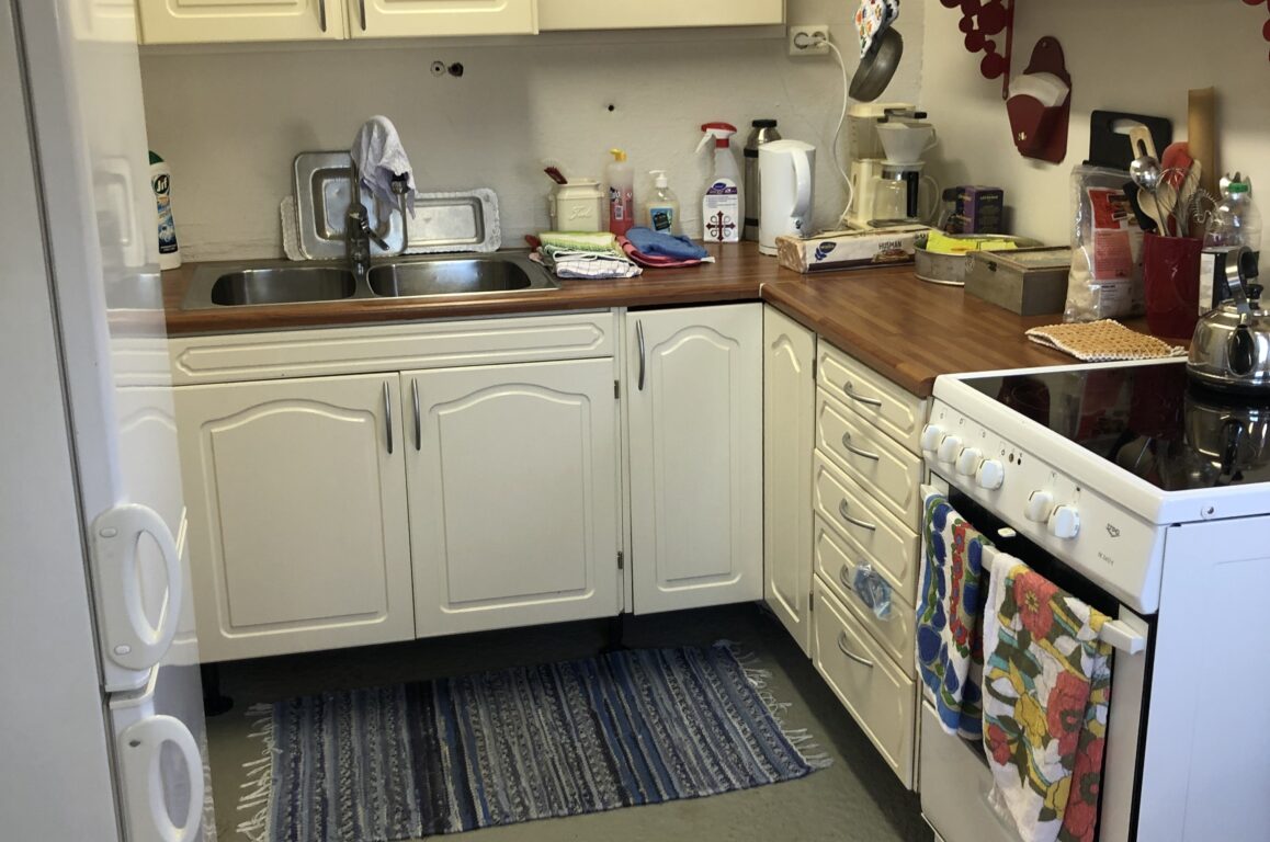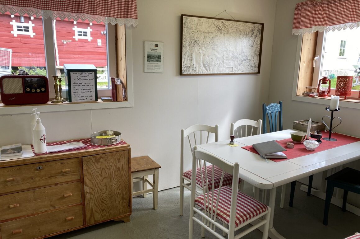 Hyggelig pilegrimsherberge i rødmalt stabbur.