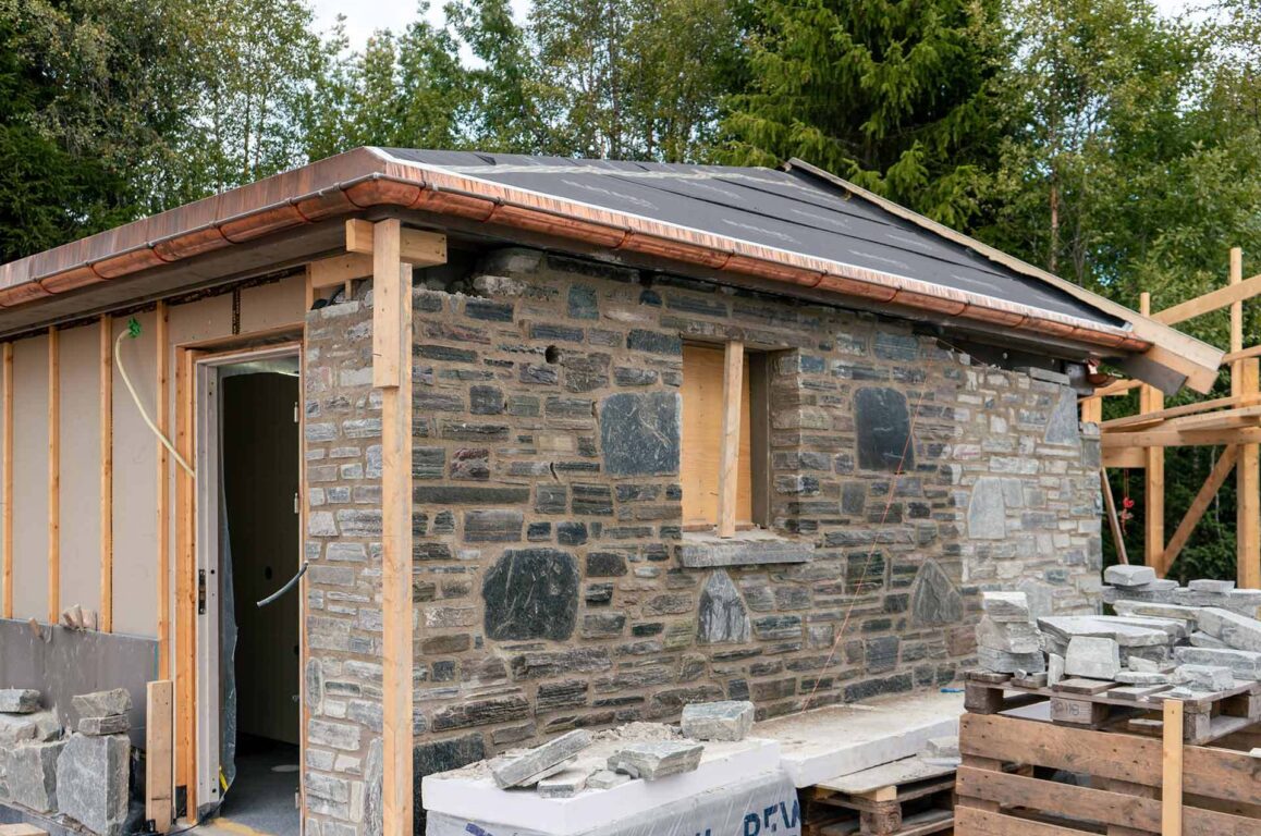 Fordi bua skal tilpasses til helårsdrift, kan man ikke bruke tradisjonell tørrmur (da denne ikke er isolert). Men, muren reises av tradisjonsmurere, med stein fra Oppdal. I steinbestillingen er det lagt vekt på å få variert størrelse og type, noe som vil gi en flott, «levende» og tradisjonell mur i uttrykket. Det er viktig for prosjektet å bevare den enhetlige stilen og så tradisjonelle teknikker som mulig, dette er gjenkjennbare signalbygg.