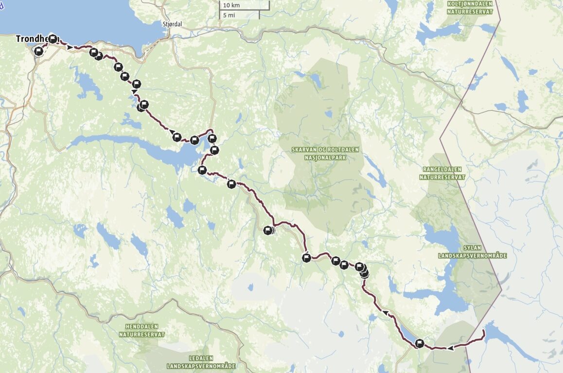 Vandringen er delt opp i dagsetapper, og du kan starte pilegrimsvandringen din fra ⌘Sylsjøen (160 km) eller fra *Græsli (100 km), se etappeplanen under. Vi har valgt å komme til Trondheim dagen før Olavsfestdagene starter og vi anbefaler en hviledag her før du reiser hjem.